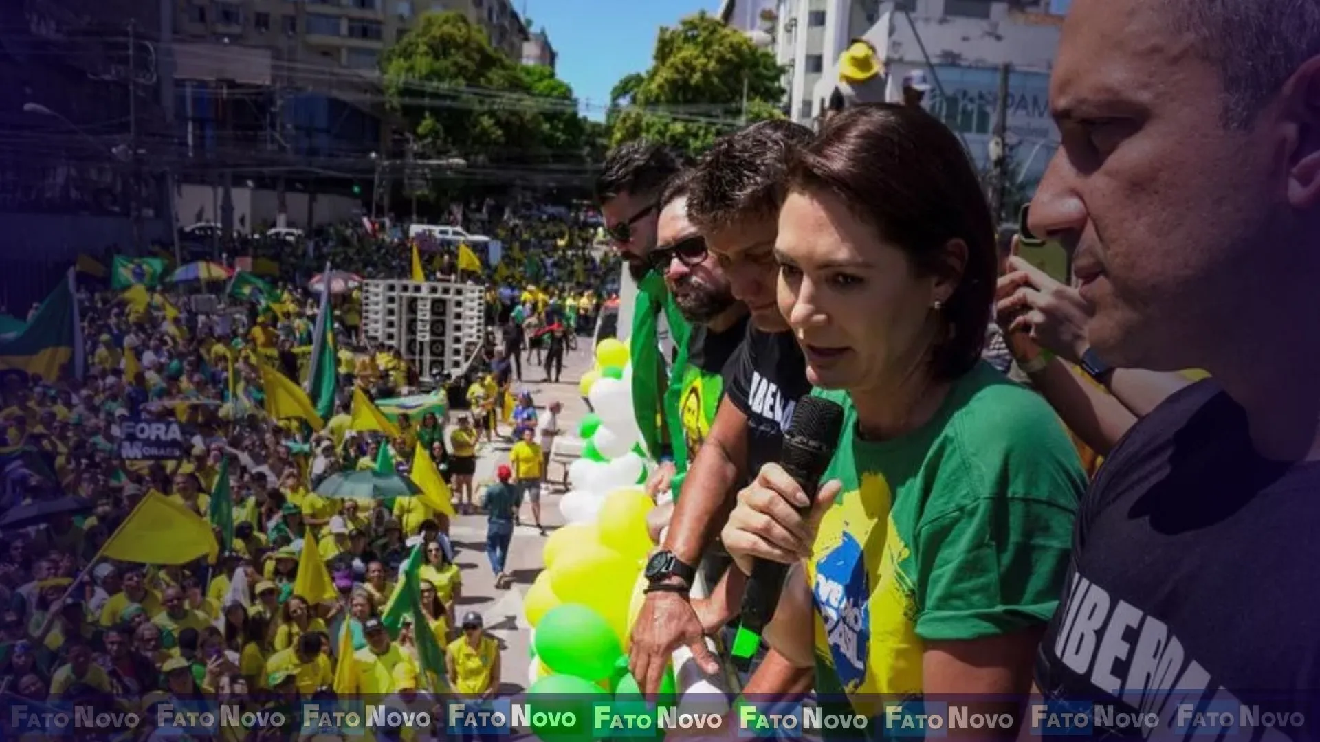 A ex-primeira-dama Michelle Bolsonaro discursou no ato em Belém, onde cumpria agenda partidária. Ela criticou a postura do governo Lula em relação aos EUA e afirmou que as sanções contra Moraes são consequência de “uma diplomacia nanica” que desrespeita o presidente norte-americano.