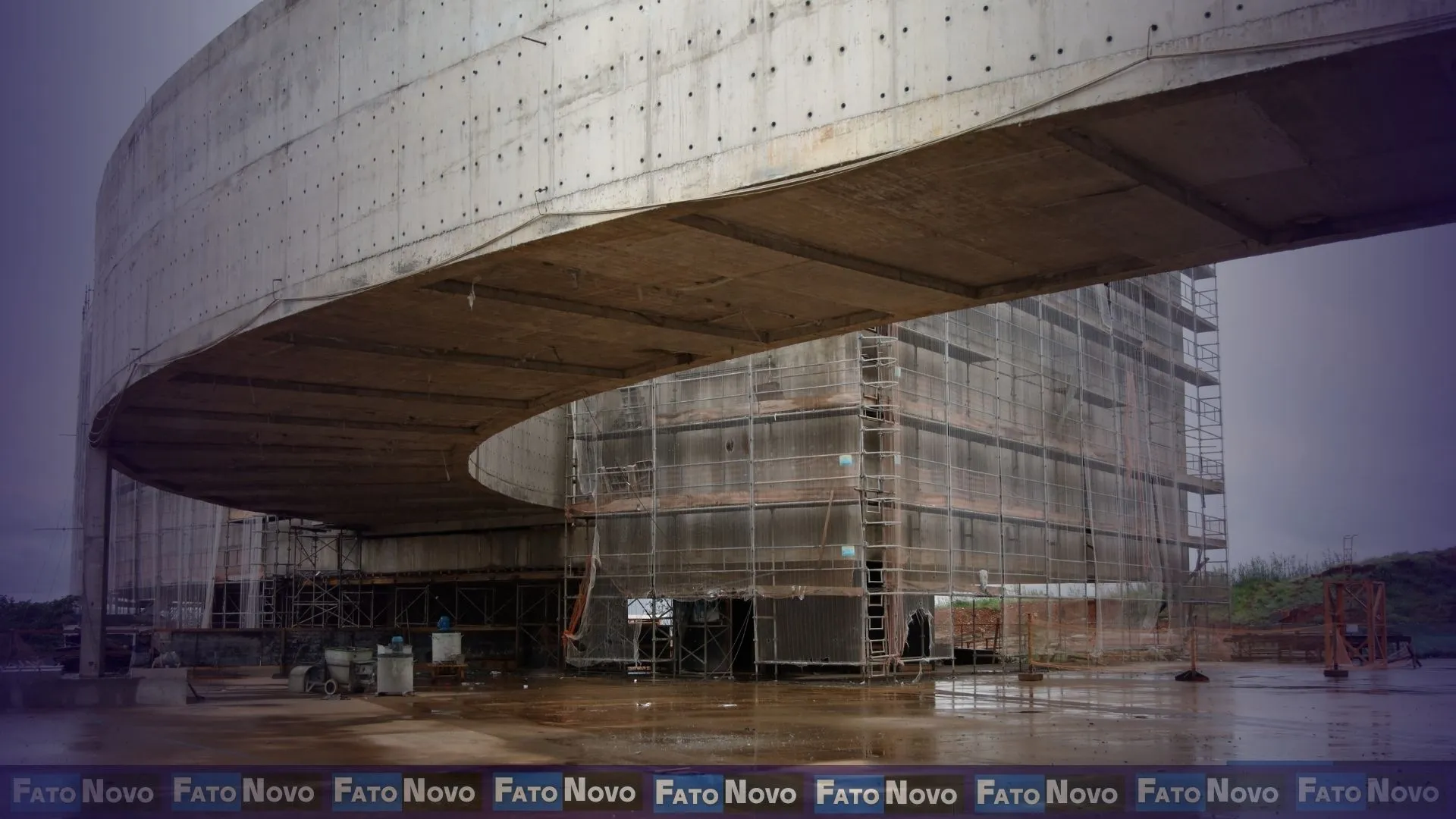 A obra retratada é uma passarela tubular de aproximadamente 50 metros, projetada pelo arquiteto Oscar Niemeyer para ligar os Blocos A e C da nova sede do Tribunal Regional Federal da 1ª Região (TRF1), em Brasília.